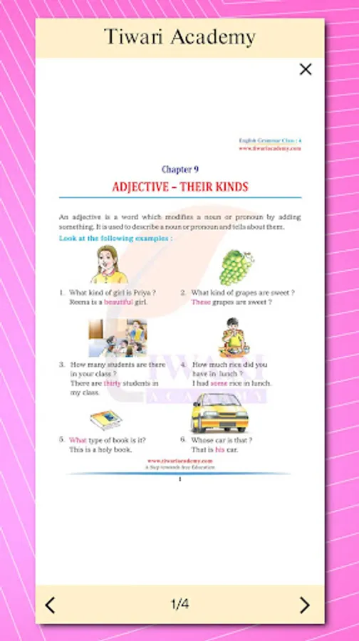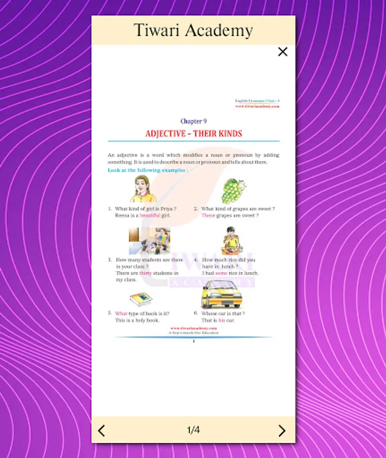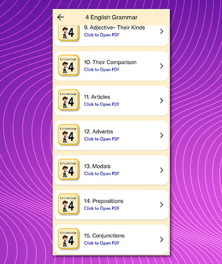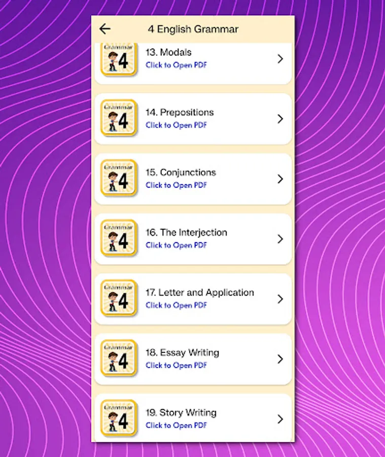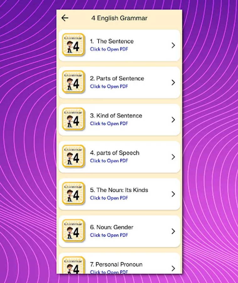 Class 4 English Grammar Book is revised and updated for academic session 2023-24 based on CBSE and State board syllabus. After each chapter, there are practice exercises and puzzles for revision. The class 4 English Grammar app contains the following chapters: