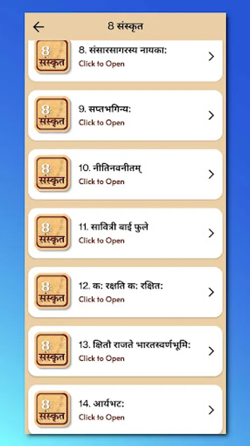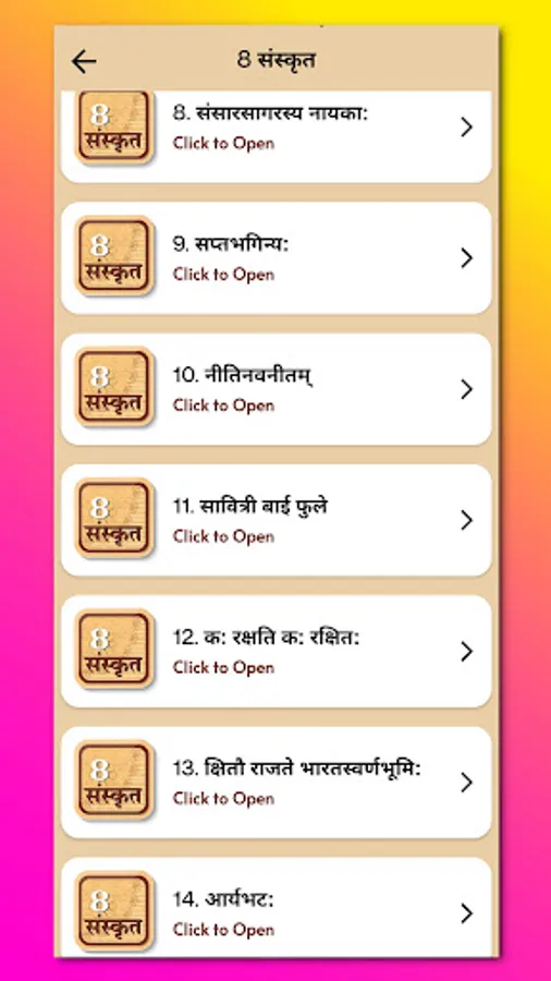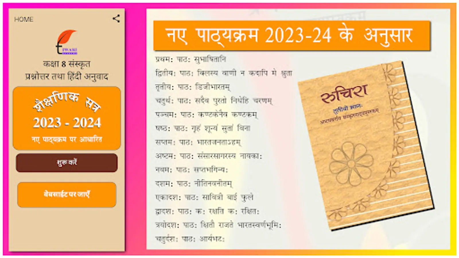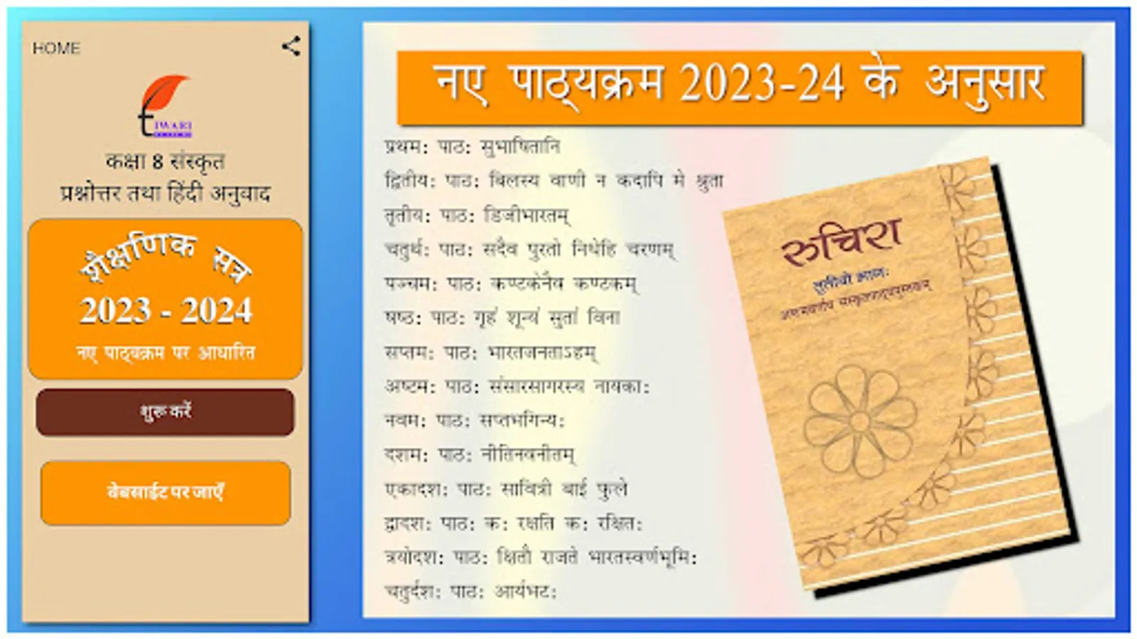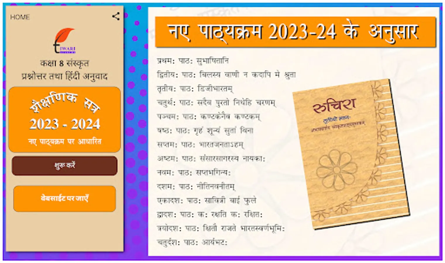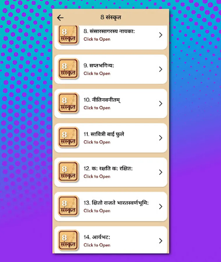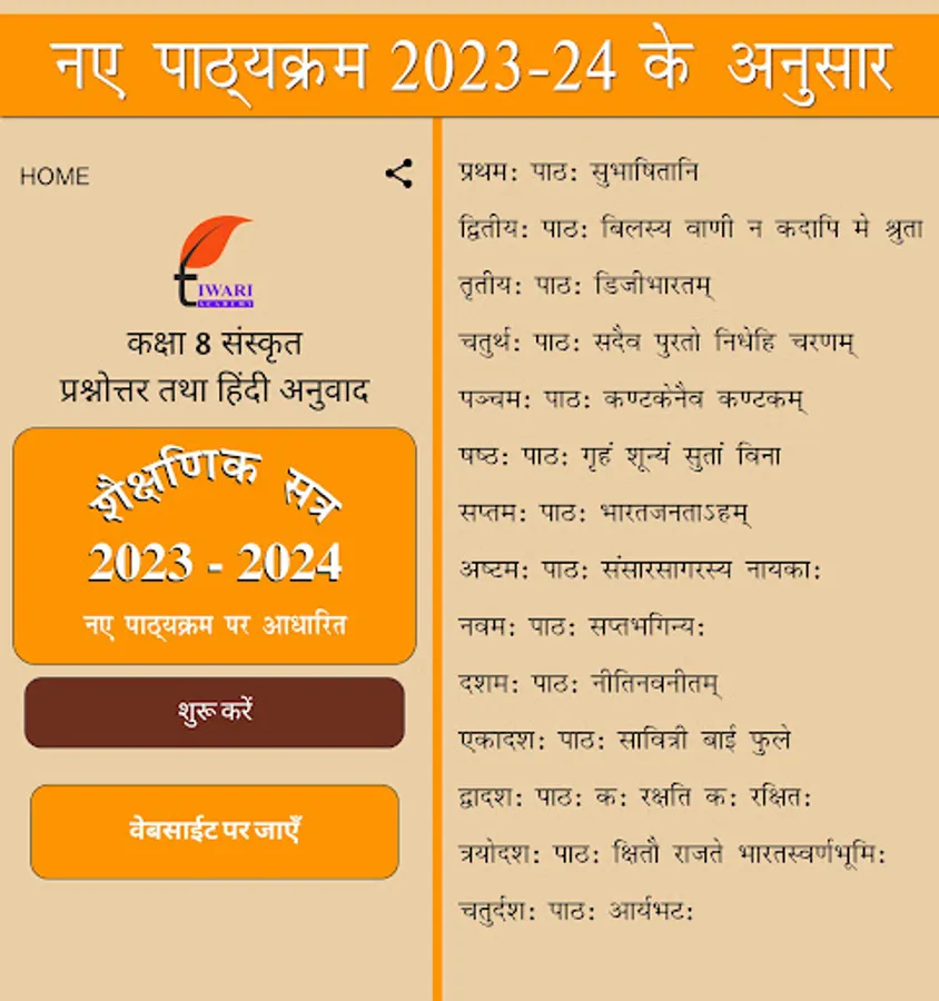 Class 8 Sanskrit Book solution is revised and modified according to new academic session 2023-24 based on new rationalised textbooks publish for current curriculum. This app of class 8 Sanskrit solution contains the following chapters: