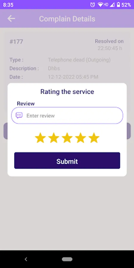 Customers can rate and give reviews to technician's service after complaint resolved.