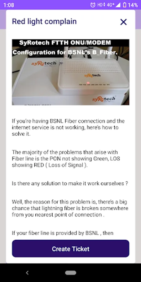 FTTH-Support is an app that provides a services to our customers.That provides you to register a complaint for your ftth/air fiber/broadband/leased line or any type of internet connection/services, Here user can post his any complaints like Red light complain, Speed issues, telephone dead (incoming, outgoing), Internet not working and other services...etc and easily reach to support center to get it resolved in a relevant time period with the predefined flow designed by FTTH-SUPPORT team.
