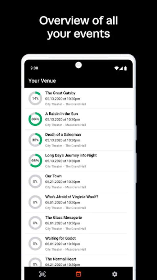 Get important insights about your venue and events. With our mobile companion, you’ll see key figures right away when logged in, and can have full access to event specific statistics.
