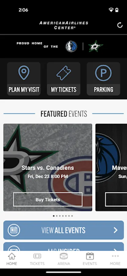 The AAC App is the official app to enhance your experience at the American Airlines Center. Our new and improved app makes it easier to access and manage your tickets and memberships from one location. Browse concessions, check out upcoming events and plan your upcoming outings with just a few taps.