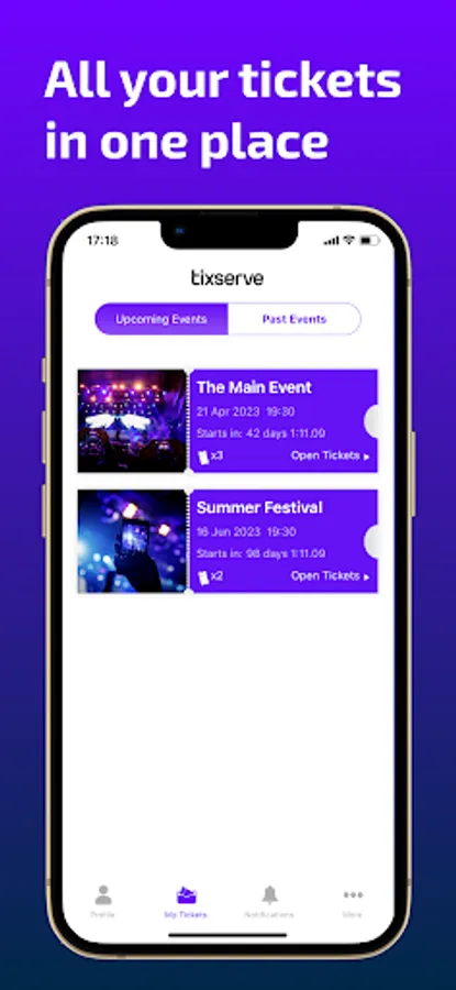 Your tickets are delivered straight into the Tixserve app - meaning there’s no need to print tickets or wait for them to arrive in the post.