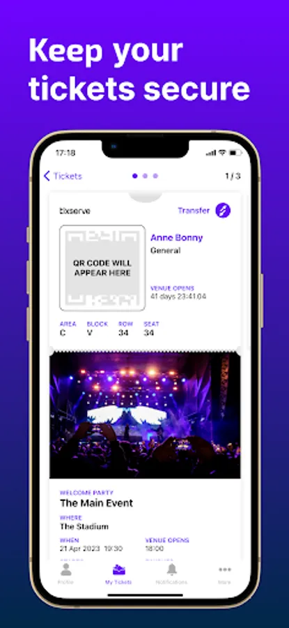 If you can’t make it to the event the app may also enable you to transfer your ticket to a friend.