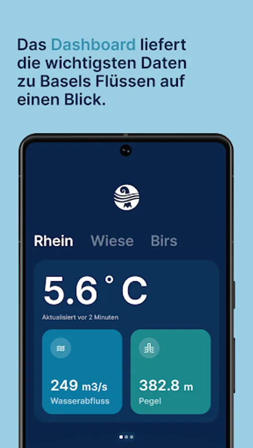 - Water body information: Current measurement data (water temperature, water level and discharge history (including forecasts) for the Rhine, Wiese and Birs