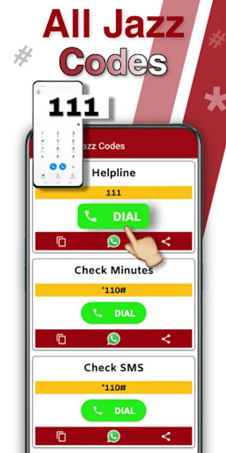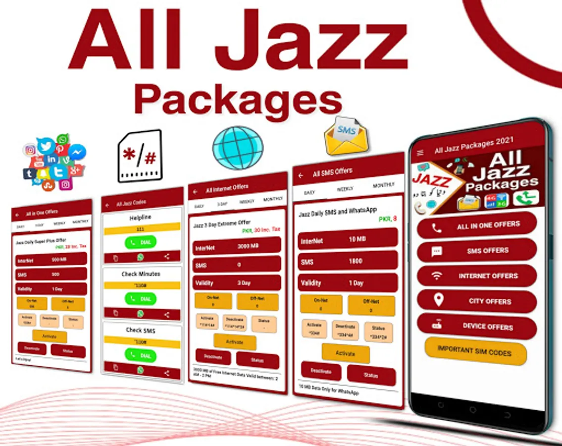 All Important Codes of Jazz Packages App like Check Mbs, Call, SMS, Check Balance, Share Balance, Check Sim Number, etc.