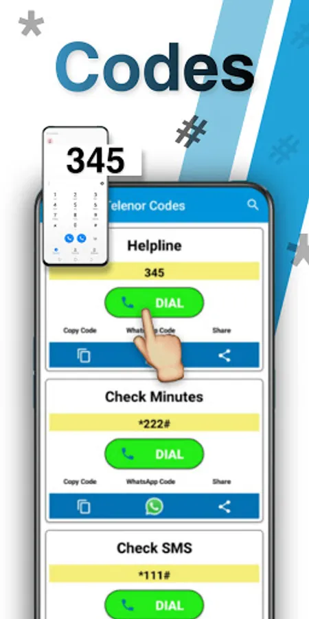 All Important Codes of Telenor App like Check Mbs, Call, SMS, Check Balance, Share Balance, Check Sim Number, etc.