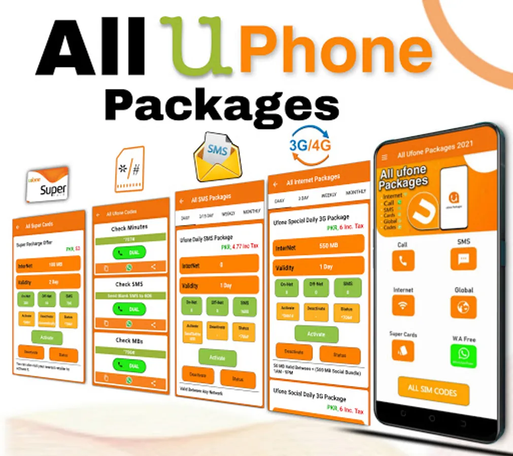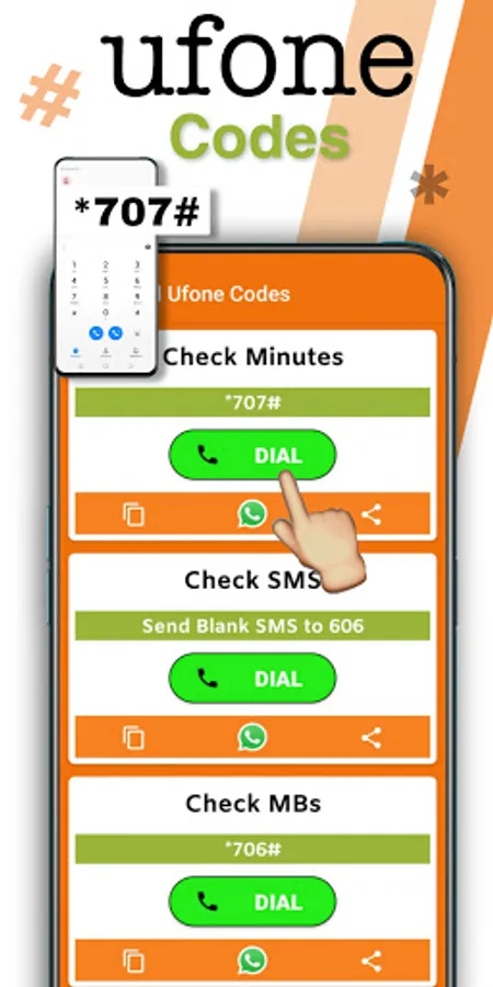 All Important Codes of the Ufone App like Check Mbs, Call, SMS, Check Balance, Share Balance, Check Sim Number, ufone Free WhatsApp, etc.