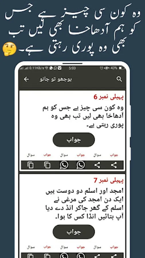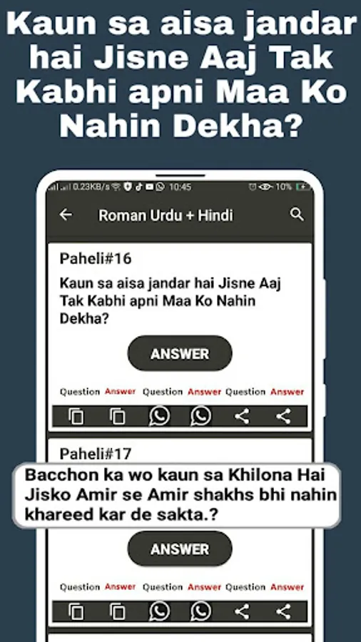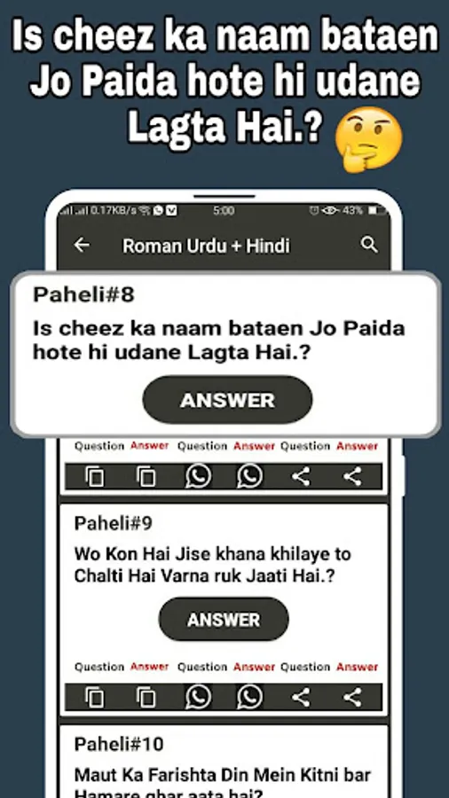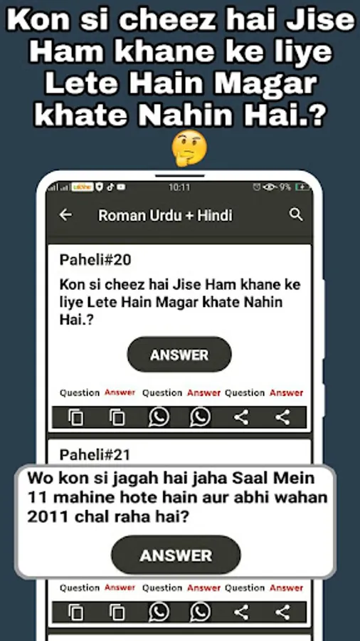 π Share Paheli questions through other Apps like Message, Facebook, etc.
