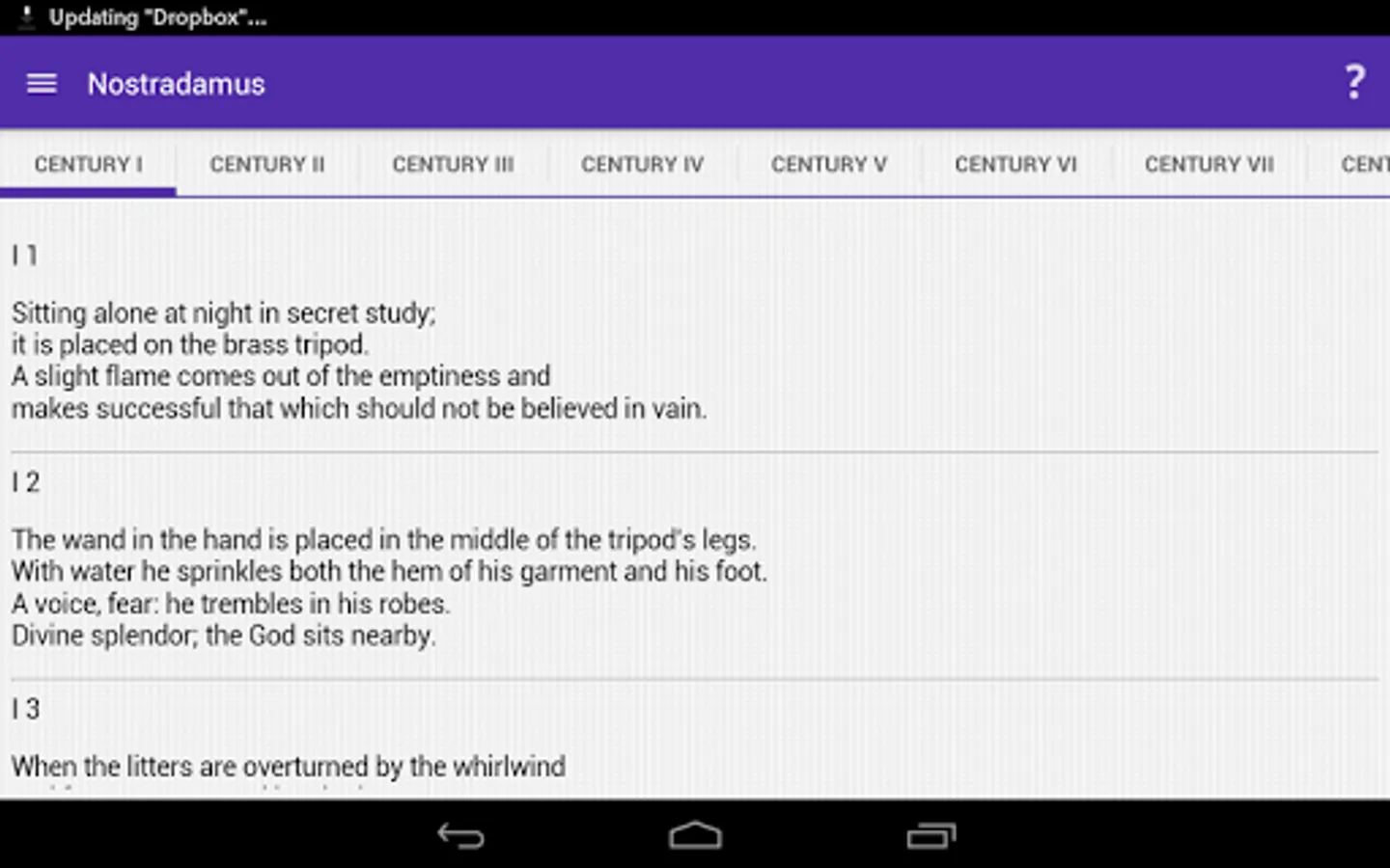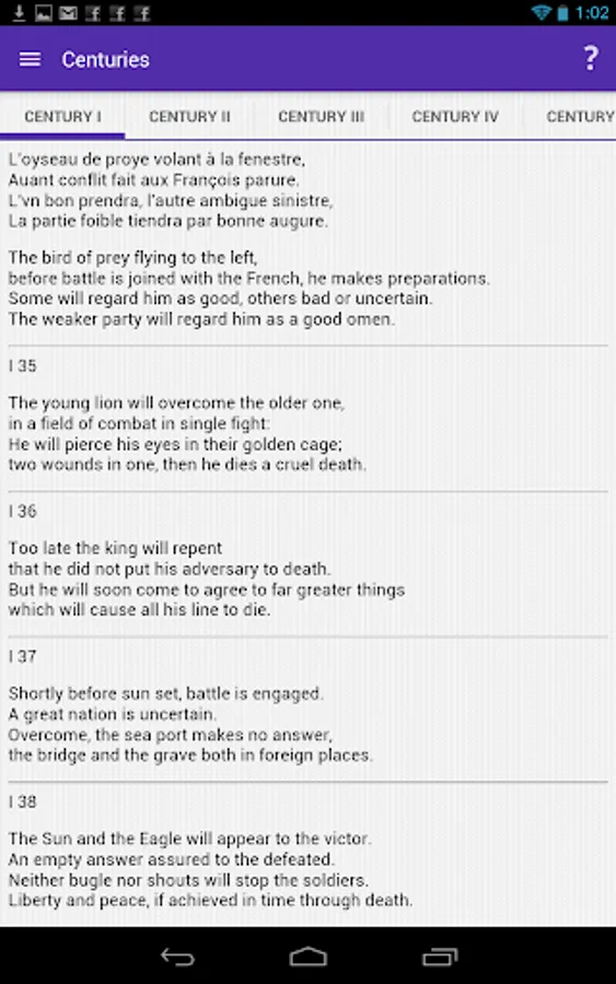 After having inherited some "ancient and forbidden texts", he began writing a book of over one thousand quatrains (four-lined verses). He mixed languages and used word games to obfuscate his message from contemporary extremists. The book Les Propheties was shunned by some, but gained popularity as it spoke to the elites and intellectuals of the time.