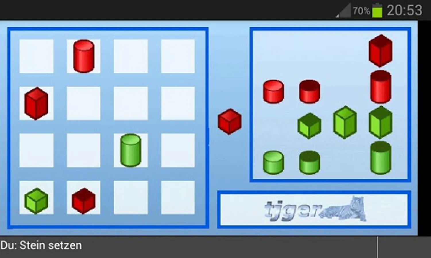 It is aim of the game to put four pieces into a row with the same quality (four rounds, four bright ones ...). A possible row can be a horizontal, a vertical or a diagonal row.