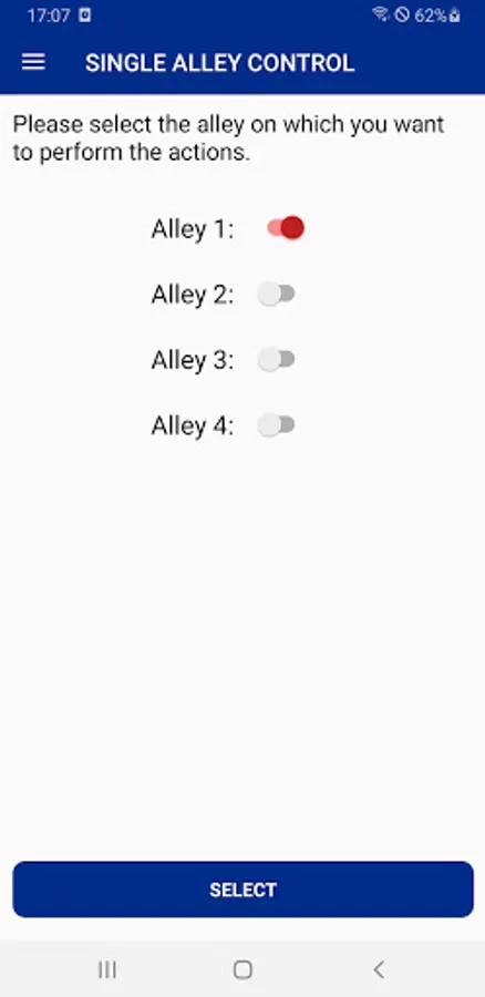 * Control all alleys (stop/set, time start/time stop, place/delete yellow and red cards)