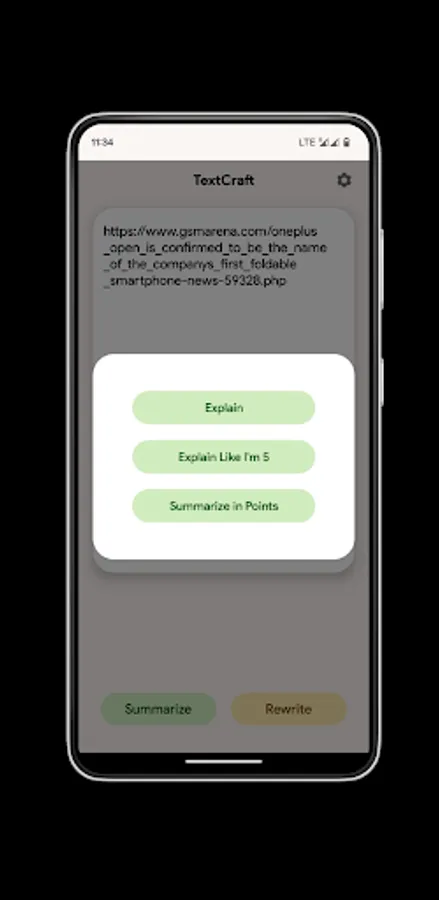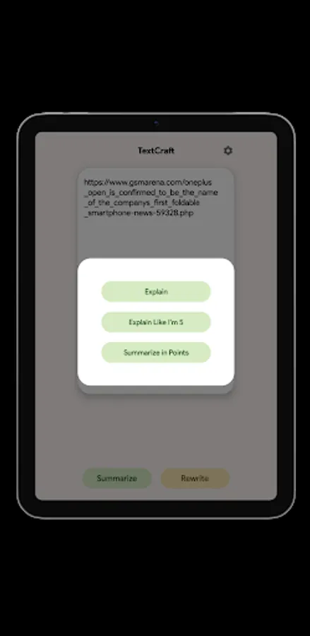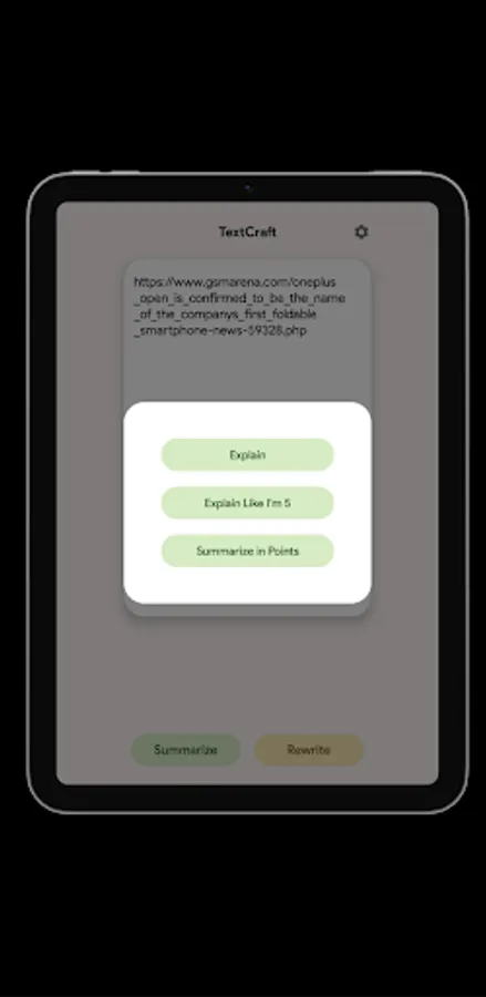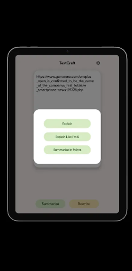 Summarize: This feature is useful to summarize lengthy texts or article links. TextCraft can generate a concise and easy-to-understand summary. Long-pressing on summarize will show more options. Also, by enabling the "Auto-Summarize Links" option in settings, you can summarize shared article links instantly.