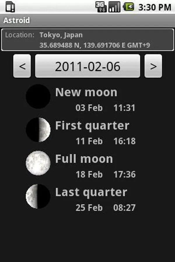 All this event could be calculated at any Earth's position using valid time zone. Time zones are defined by user or could be auto-detected using GeoNames services.