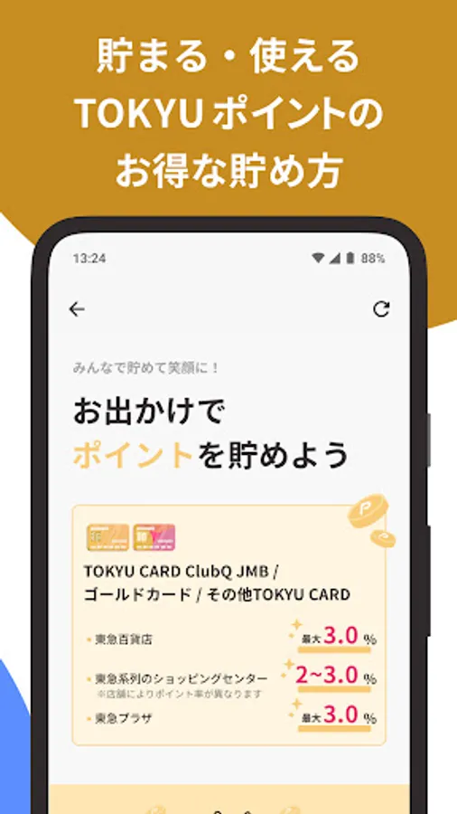 "Tokyu Card Plus" allows you to check your TOKYU CARD usage details and the point balance of various TOKYU POINT CARD.