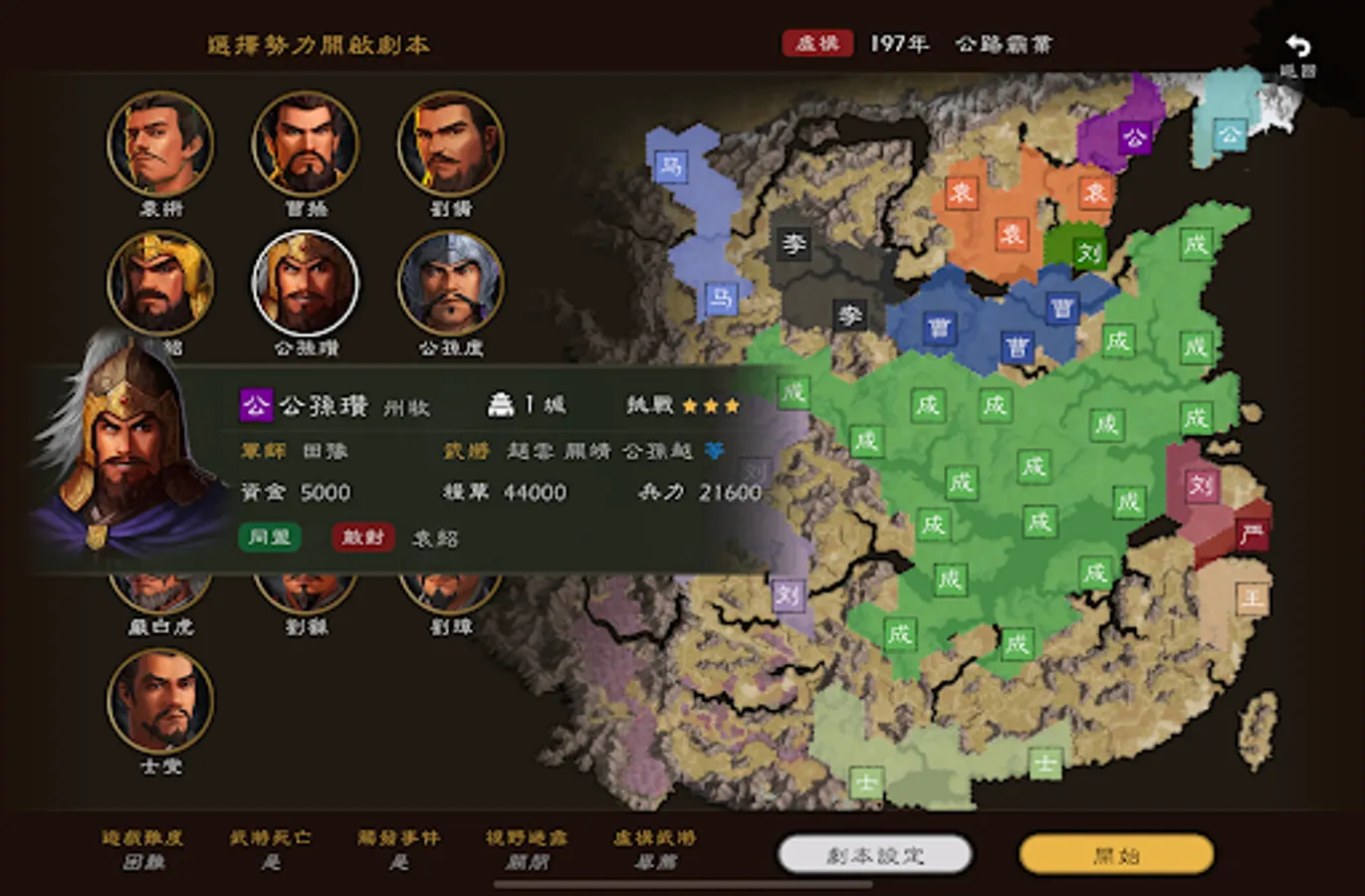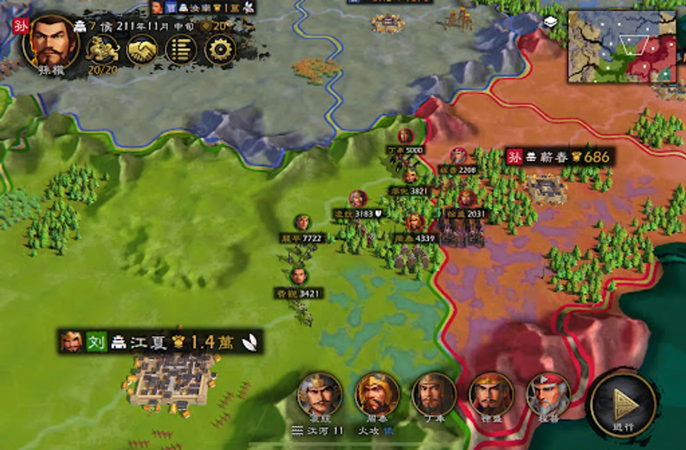 "Chasing the Deer" is a turn-based strategy game with the theme of the Three Kingdoms developed based on the historical sandbox game engine of the same name. In the troubled times of the Three Kingdoms where gunpowder is everywhere and princes are fighting for hegemony, players can choose any power in the script and play the role of the protagonist. Help you strategize through domestic affairs, diplomacy and other gameplay. Lead the heroes under your command, attack cities and conquer territories, and expand the territory on the vast battlefield. Either rejuvenate the Han Dynasty, or become a generation of heroes, all in your hands.
