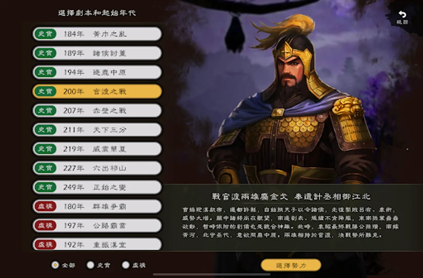 The historical script of "Chasing the Deer" is based on "The Romance of the Three Kingdoms". The game runs through historical allusions and strives to restore the historical facts and features of the Three Kingdoms period. Players can choose the script arbitrarily, and play the role of the protagonist of one of the forces, planning to rule the Three Kingdoms and unify Kyushu.