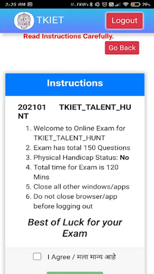 Those who want to appear for the "TKIET Talent Hunt Competition (MHT-CET) 2022" must fill registration form. You can attempt "TKIET Talent Hunt Competition (MHT-CET) 2022" exam from your home/native place as well as at Tatyasaheb Kore Institute of Engineering and Technology, Warananagar.