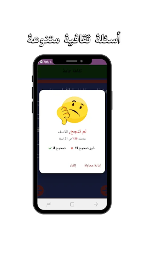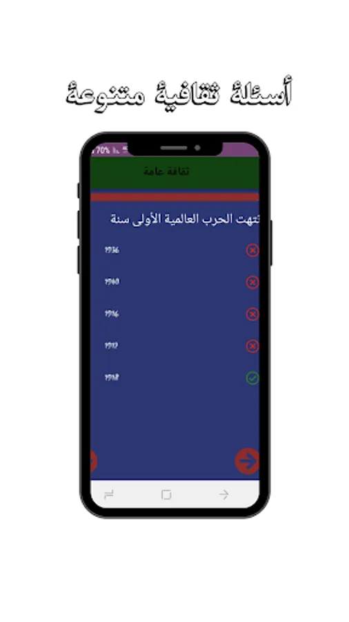 General geographic information, international organizations and institutions, electronic professions, social networking sites, well-known sites, NASA and the world of space, general historical chemical theories and laws, technology, a useful and fun game for all family members, hundreds of questions of varying difficulty, successive updates, test your general cultural and religious information, the ability to view the leaderboard table in the game in order to overtake them, the possibility Sharing the application and results with your friends and family is 100 percent Arabic and free forever. In all Arab and even foreign countries, Morocco, Syria, Libya, Tunisia, Algeria, Egypt, the mother of the world, and a salute to the Atlas Lions, as well as containing many religious questions about the life of the Messenger, may God bless him and grant him peace, his companions, and his wives, in the religious field cultural questions regarding the Qatar World Cup 2022 and Argentina’s victory in the World Cup The world for the year 2022, and other information about the life of Messi, Ronaldo, Hakim Ziyech, Hakimi and Boufal, the coach of the Moroccan national team, Walid Rekraki, the author of the saying of Deir al-Niyyah, Ras Lafouka, and cultural questions about the Moroccan national team’s qualification to the quarter-finals of the 2022 World Cup Qatar, and questions about organizing the World Cup for the next round (2026) in each of Mexico and the United States of America (USA) and Canada, as well as questions in the artistic and cinematic field with regard to films and drama series, and questions in all fields.
