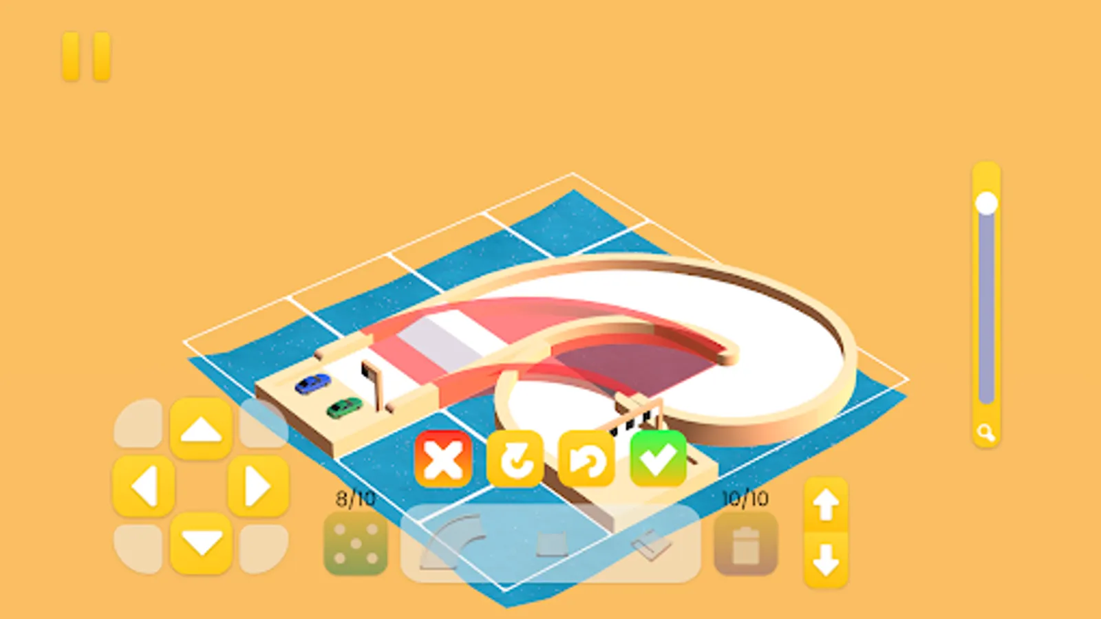 • When playing, the game will randomly display 3 pieces for the track, corresponding to each time you need to install 1 piece. Example: arcs, straight lines, ramps ...