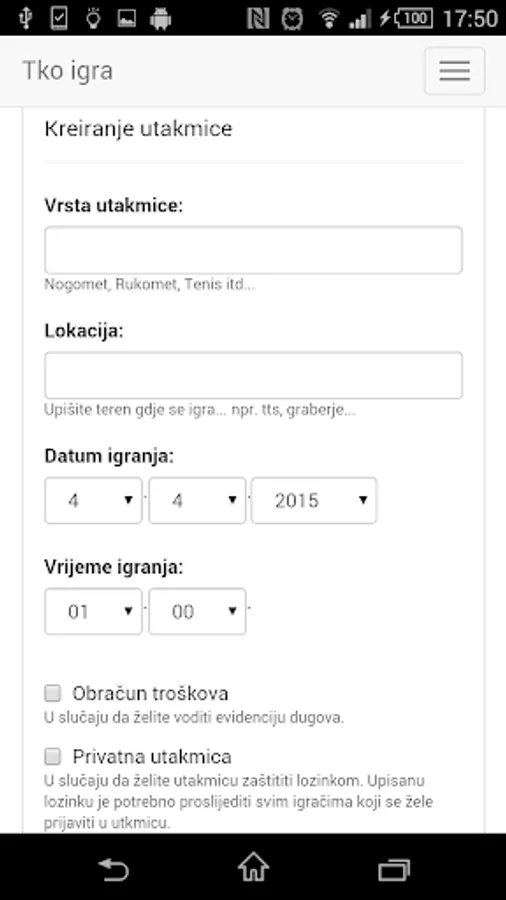 Tkoigra you organize sporting events in a way that a particular user creates a sporting event (eg. A football game), and interested users to join this event and thus see actual strength of players and interested players.