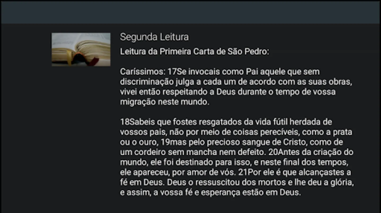 To give due credit, the readings are obtained from the litigation website of Canção Nova, processed manually and stored in the cloud.