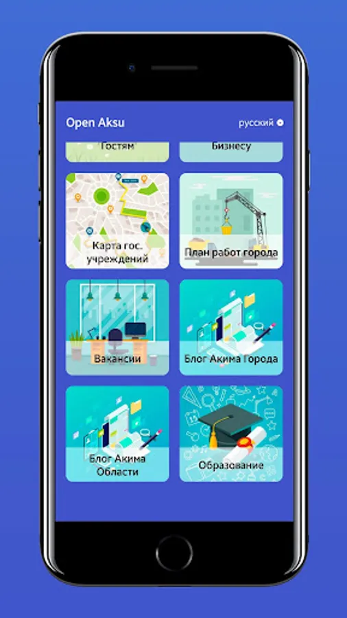 The mobile application Open Aksu will help provide citizens with quick access to the necessary information, ensures the openness of the activities of the services provided to citizens, and also includes such functions as: