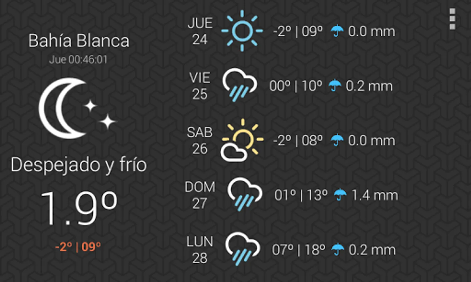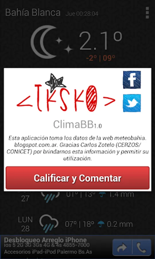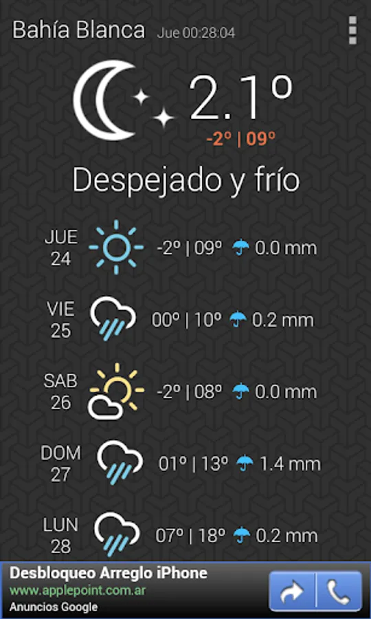 ClimaBB is an application that allows you to quickly see the status of climate and forecast to 5 days of the city of Bahia Blanca.