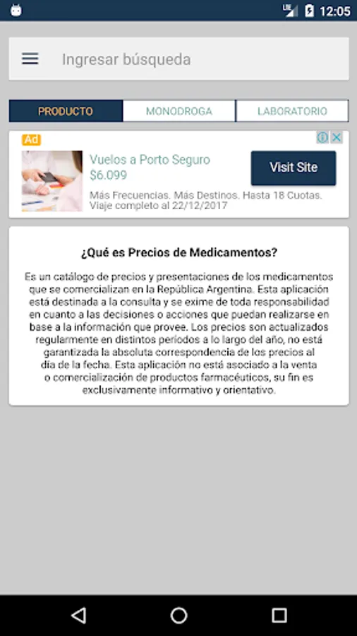 * Allows you to search medicines by trade name, monodrug or laboratory.