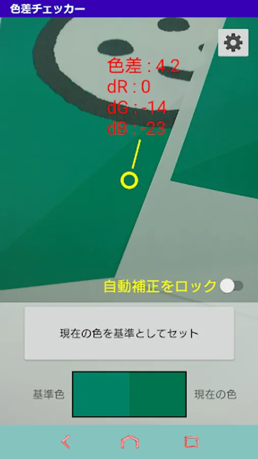 The color difference ⊿E (Delta E) from the standard color is displayed in real time on the screen.