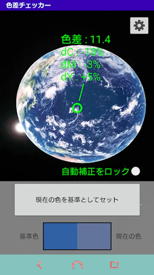 Align the circle in the center of the screen with the color you want to use as the reference, and press the button.