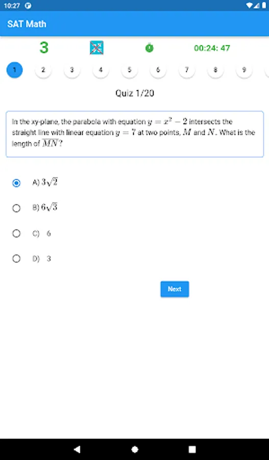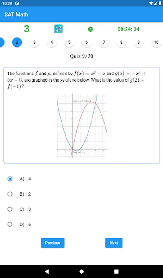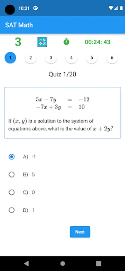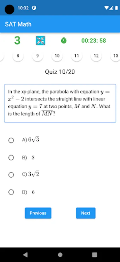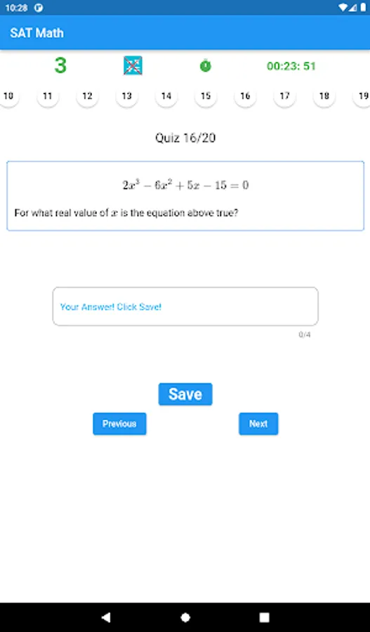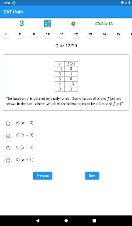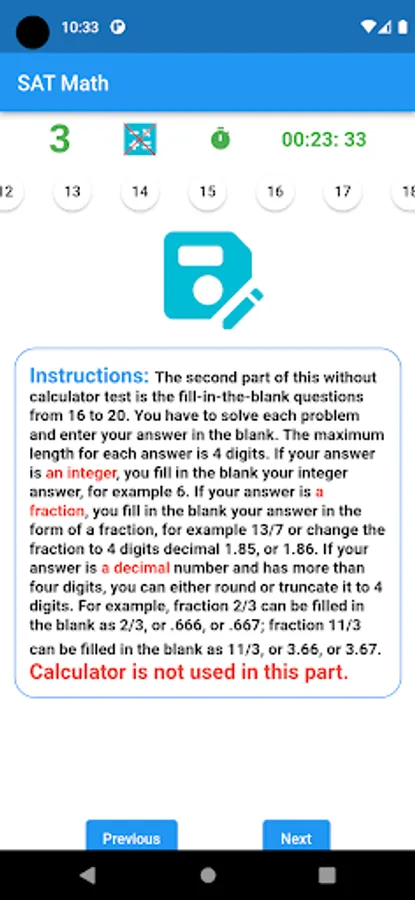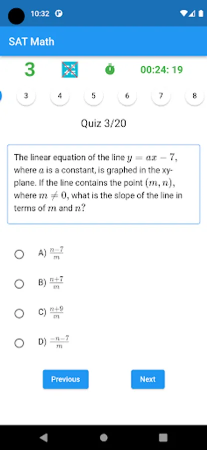 SAT full-length, timed practice tests in Math. SAT App for Android-based smartphones and tablets explains studying for this challenging college entrance exam. Our App utilizes practically written questions to simulate the rigorous level of testing that the SAT exam provides. This SAT App for Android devices characterizes full-length Math tests (parts III and IV) and learning content for the SAT Exams. Try the timing full-length Math tests to assess your general score. Receive your result feedback to analyze your strengths in Math areas.