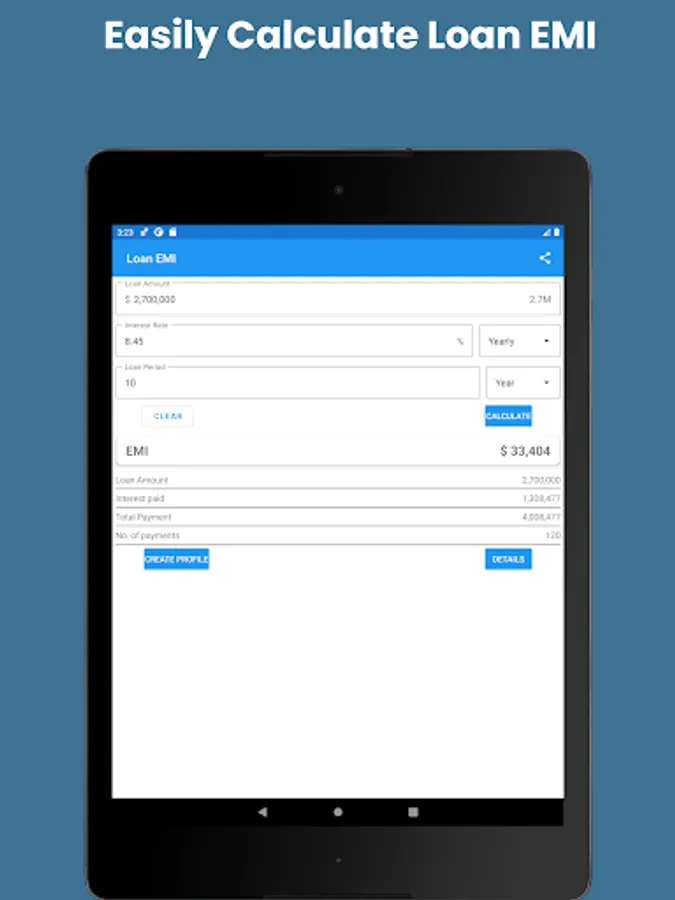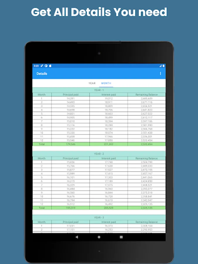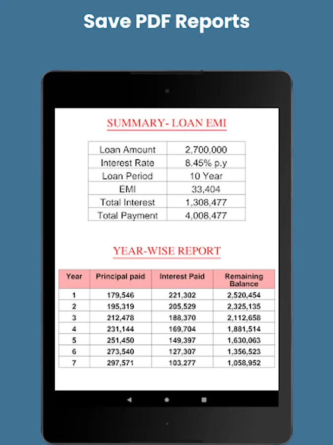 Finance Calculator is a Finance planner tool. You can easily calculate your Loan EMI and can get detailed report like how much Interest you will pay, what part of your EMI will go towards principal payment and what towards interest payment.