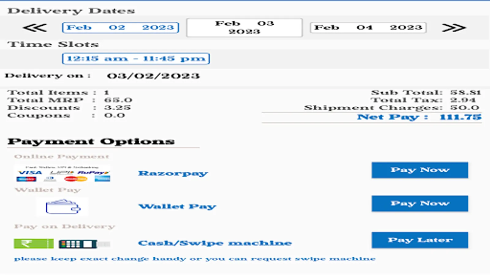 Current door delivery services cities are