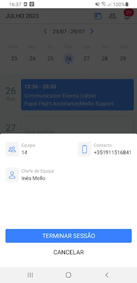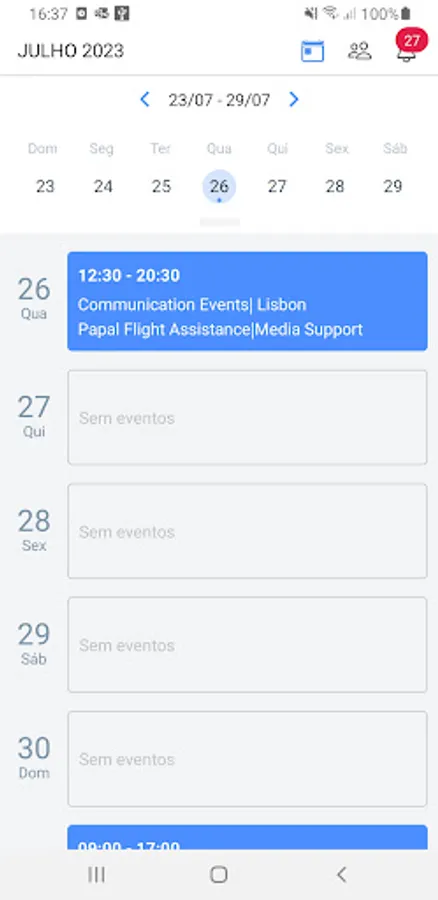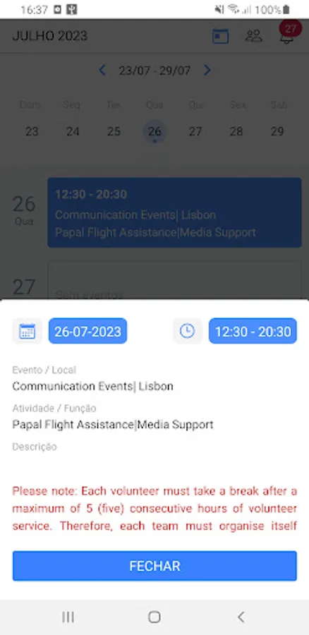 Application intended for consulting schedules of volunteers for World Youth Day 2023.