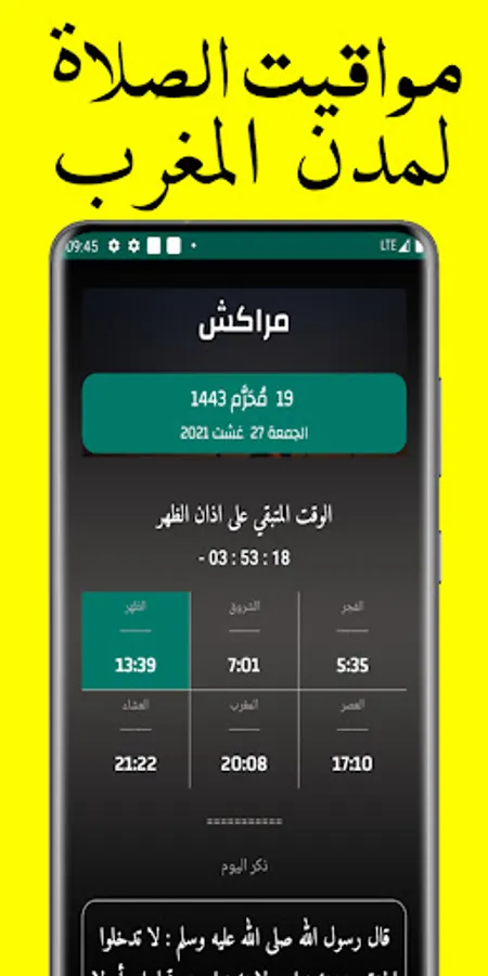 Mobile application offers timings in Morocco without error to the cities of Morocco: Rabat, Fez, Meknes, Casablanca, Marrakech ...