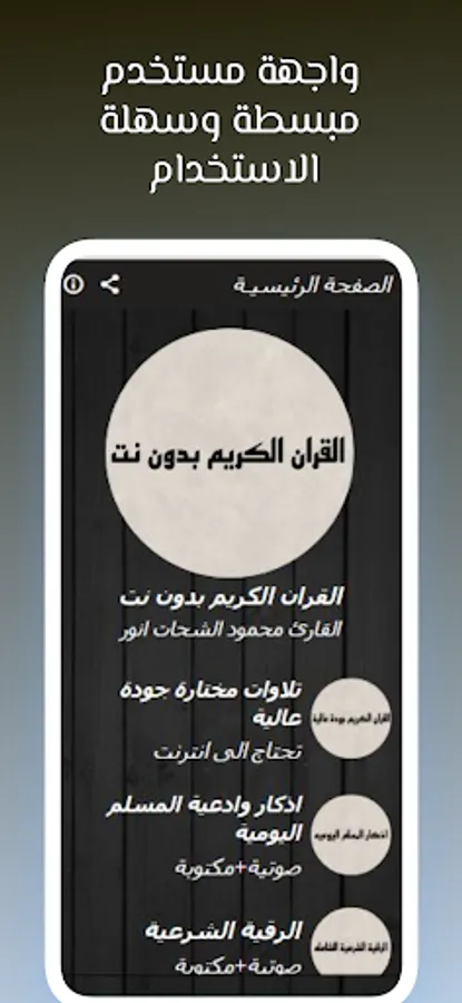 The most beautiful audio library of Quran recitations, with the voice of the reciter Mahmoud Al-Shahat Anwar, without the net. A wonderful and arranged audio library. The application on legal ruqyah is beautifully written and also contains morning and evening remembrances