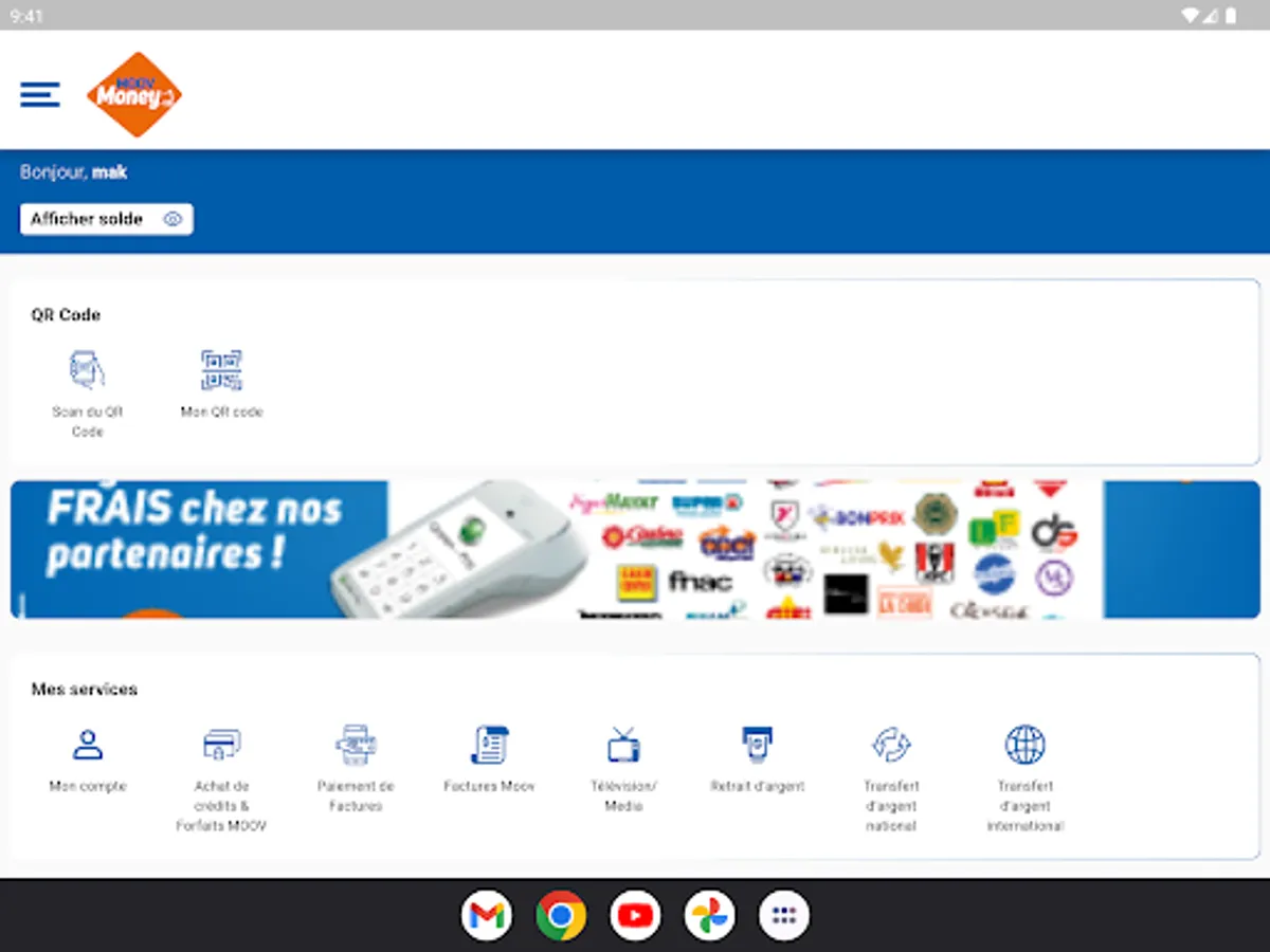 Moov Money CI is a user-friendly, ergonomic and all-in-one mobile application for smartphones and tablets allowing subscribers to: