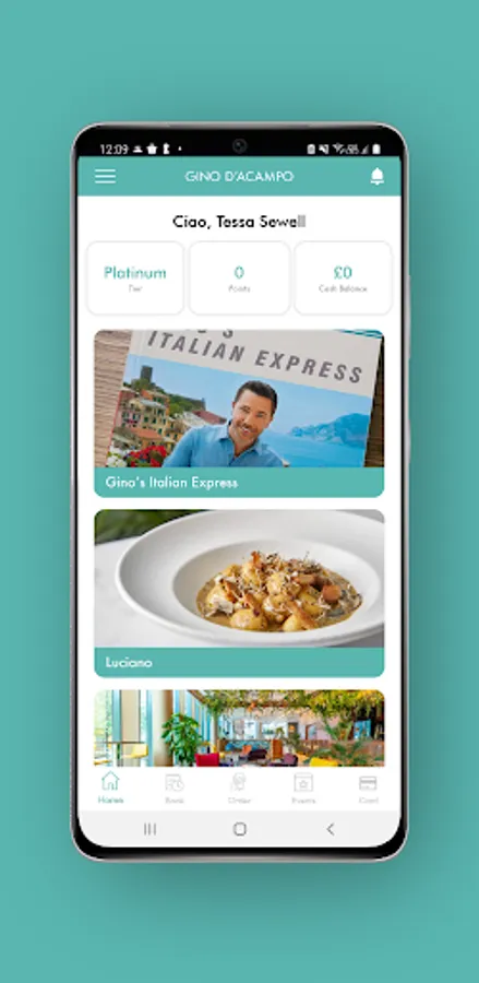 The Official App for Gino D'Acampo includes loyalty and rewards for Gino Rewards