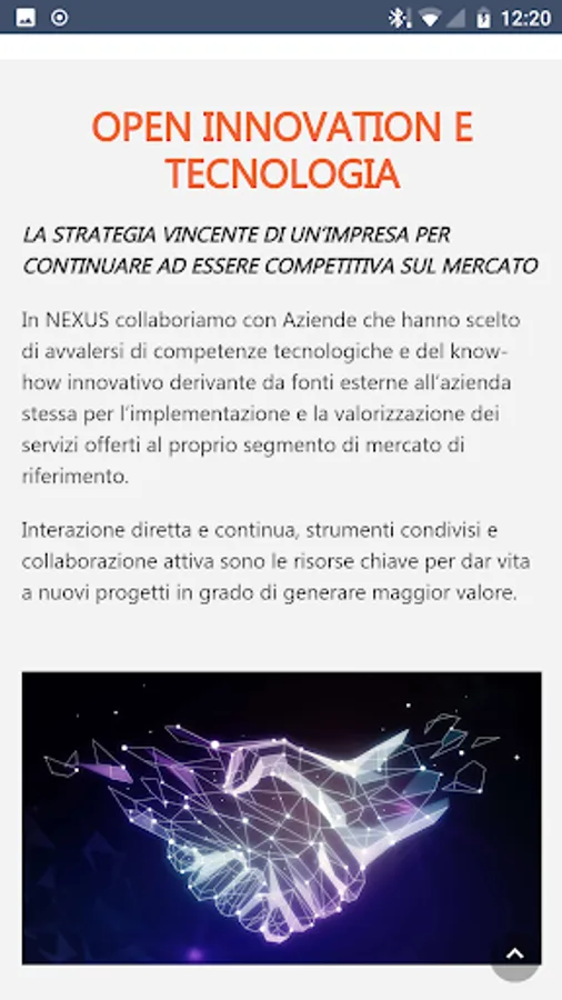In NEXUS we collaborate with companies that have chosen to make use of technological skills and innovative know-how deriving from sources external to the company itself for the implementation and enhancement of the services offered to their target market.