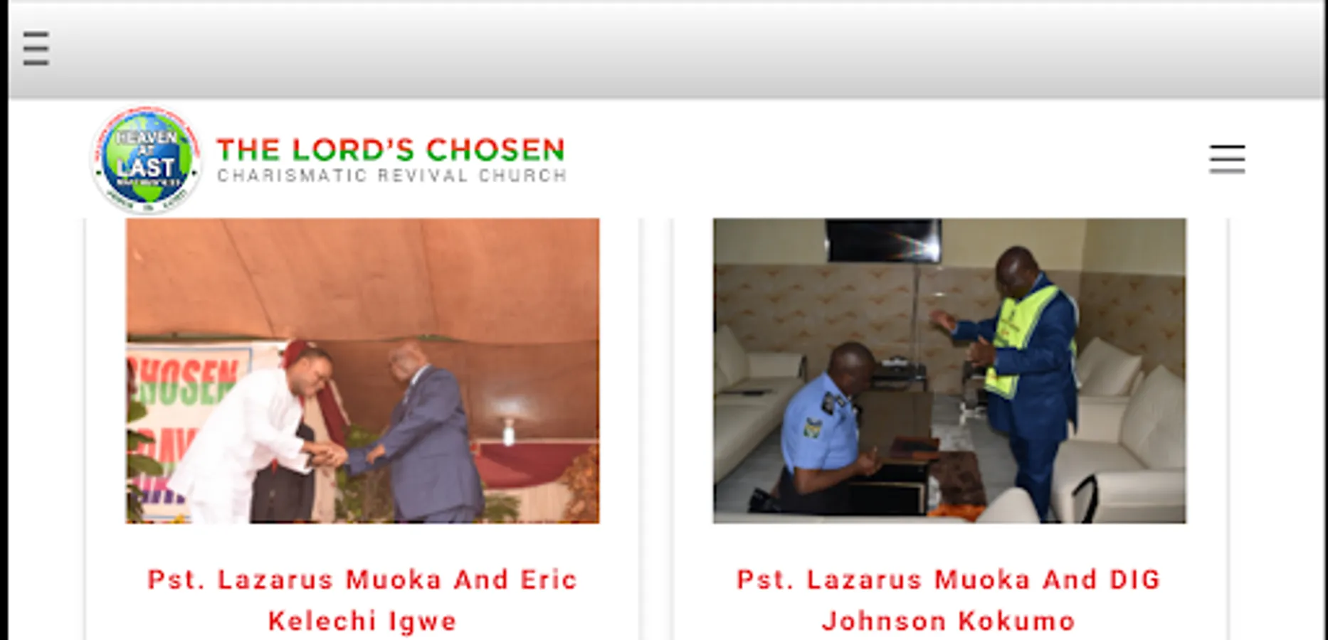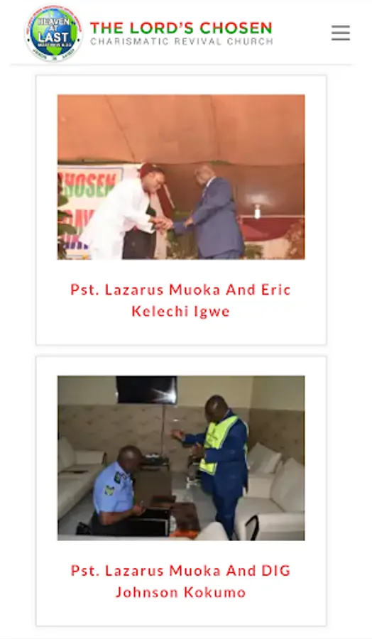 App represents The Lord's Chosen Gallery, It consist of all kinds of the Lord's Chosen picture's link, both the one that shows the General Overseer of The Lord's Chosen Charismatic Revival Movement ( The Bible Believing Church ) and other people etc.