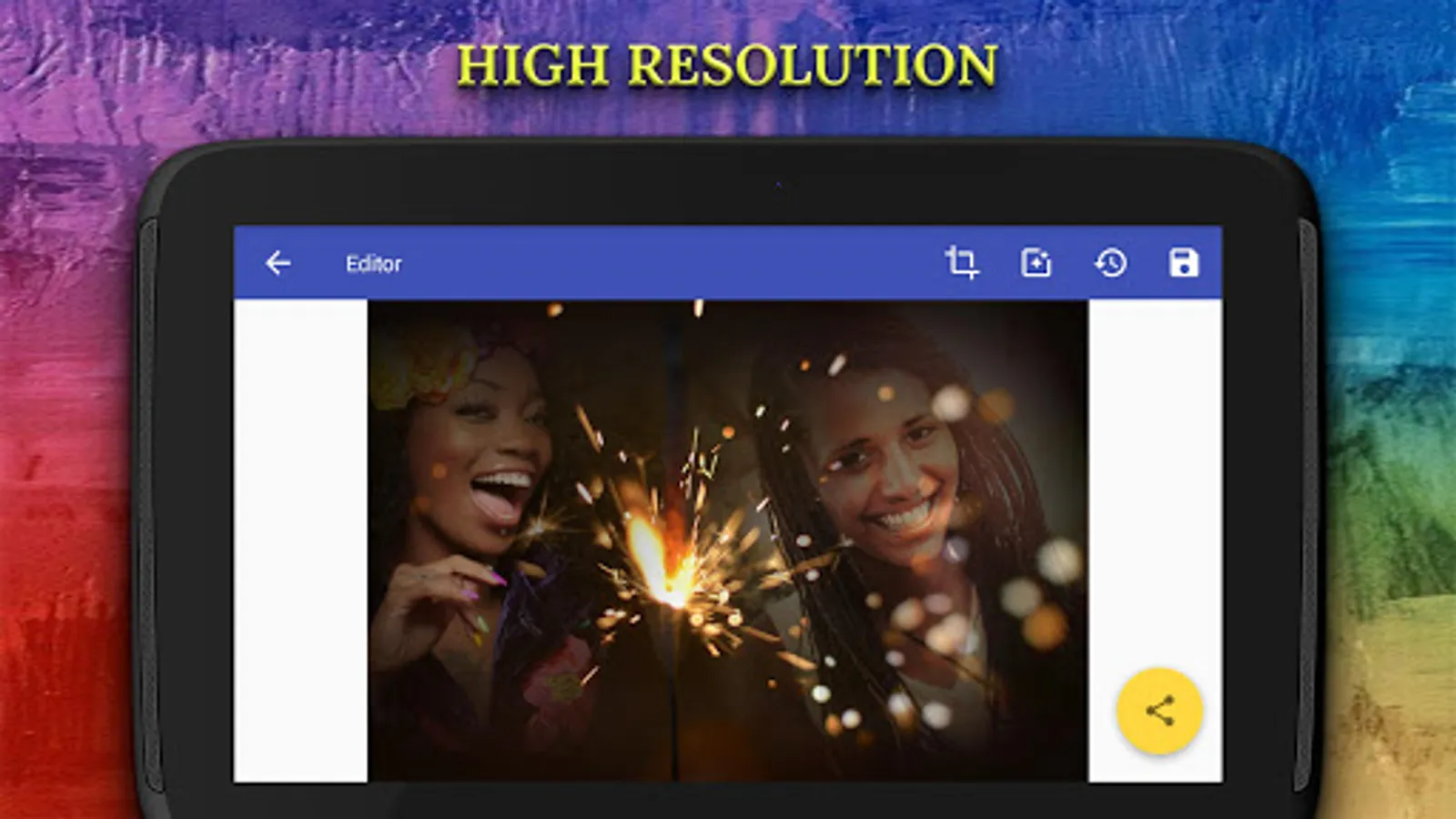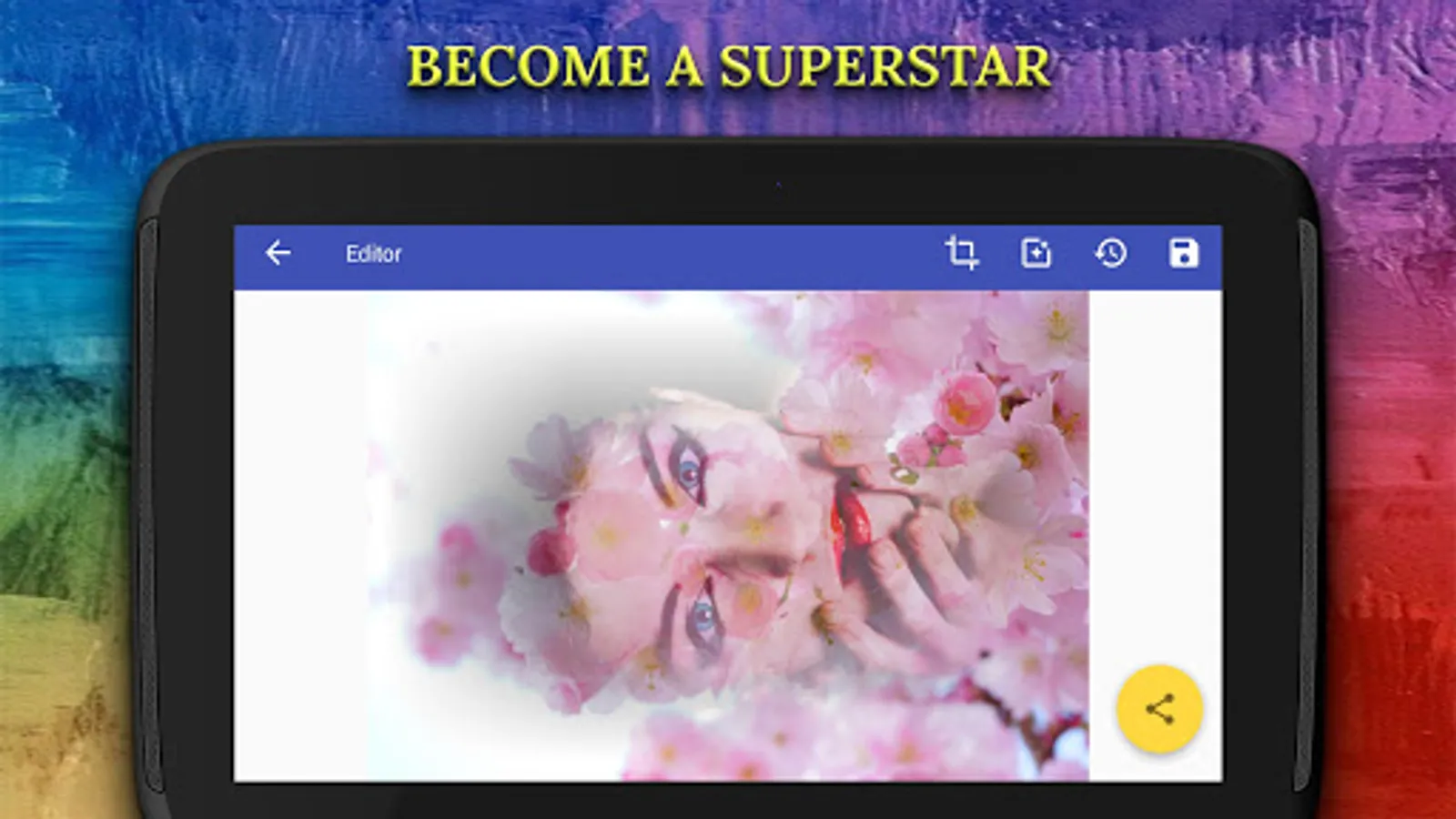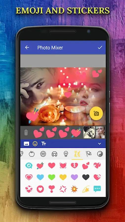 Thanks to its intuitive one-touch interface you can turn your device into a photo studio that gives you everything to create beautiful collages by overlap photos on photos in high resolution. Editing pictures and adding emoticons, smiles, emojis, stickers, effects and filters has never been easier.