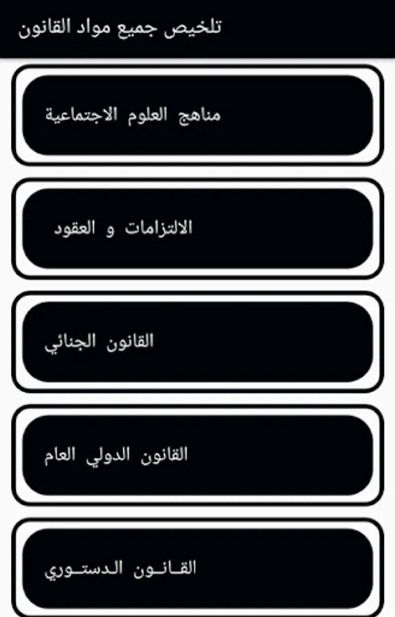Summarizing all articles of law This wonderful application contains a summary of all the Law Division in Arabic from the first chapter to