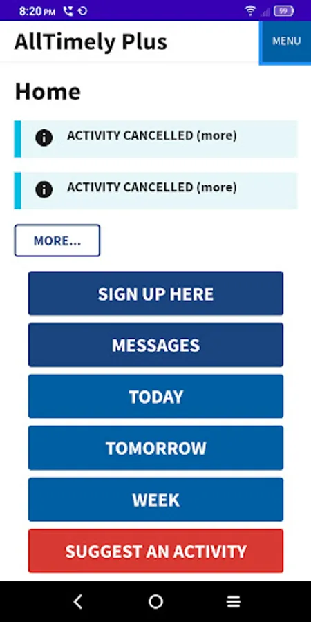 Students will login by selecting their school. They will then provide username/password credentials to the school-branded login school. Students will then select from these activities for the defined schools' days, and be notified accordingly if an activity is cancelled.