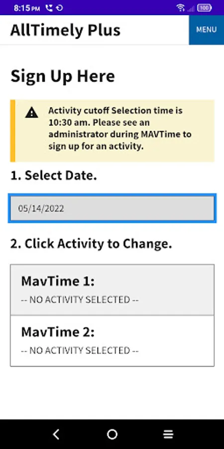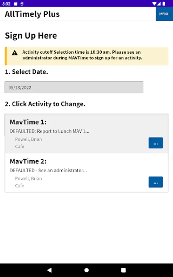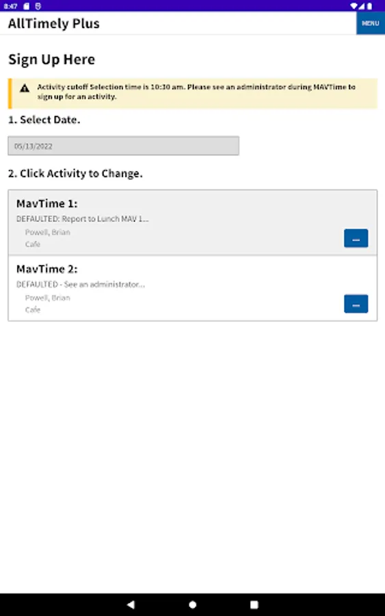 AllTimely allows the students to select one or more activities to attend during Genius Hour. These activities are defined by the teachers using the web application. Typically, teachers will create activities for learning Coach classes, as well as extracurricular activities.