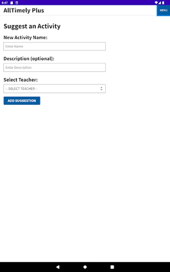 For a school to use AllTimely, please contact more@thelocalmachine.com. We will work with you to set up a web site for your school, with your own school's name in the web address. Once the site has been set up for your school, we will import your students and teachers, so they all have accounts to log into AllTimely. Also, we will set up which days you will have Genius Hour, in order to build a schedule to be shared with the students.