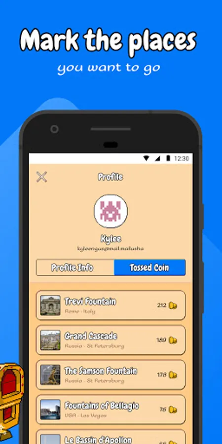 ⛲ Compete in a global ranking of travelers for the most coins tossed.