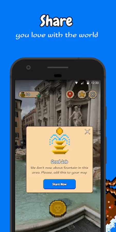 ⛲ Share places where you've tossed coins to friends on Facebook, Twitter, Instagram, and more.