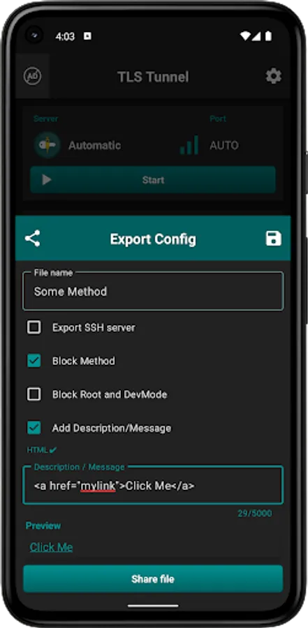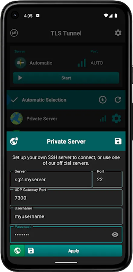 Remember that TLS Tunnel is completely free, but with the Private Server option, if you don't have your own server, you can pay to have access to third party servers, keep in mind that TLS Tunnel is not responsible for private servers, so in case of problems with private servers, contact the server owner.