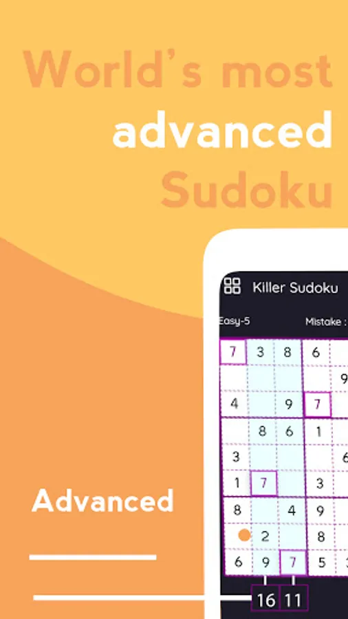 Killer Sudoku is an enhanced free Sudoku Puzzle Game on Google Play. It is one step ahead of normal Sudoku. It is an addictive Brain Sudoku puzzle game. Killer Sudoku for the brain for beginners and experienced players! For your Android phone and tablet, you can download the free Killer Sudoku app. Just Download and Play Free Killer Sudoku and sharpen your brain. Solve for fun the simple level of regular Sudoku puzzles, develop critical thinking skill with medium/hard levels of Sudoku.